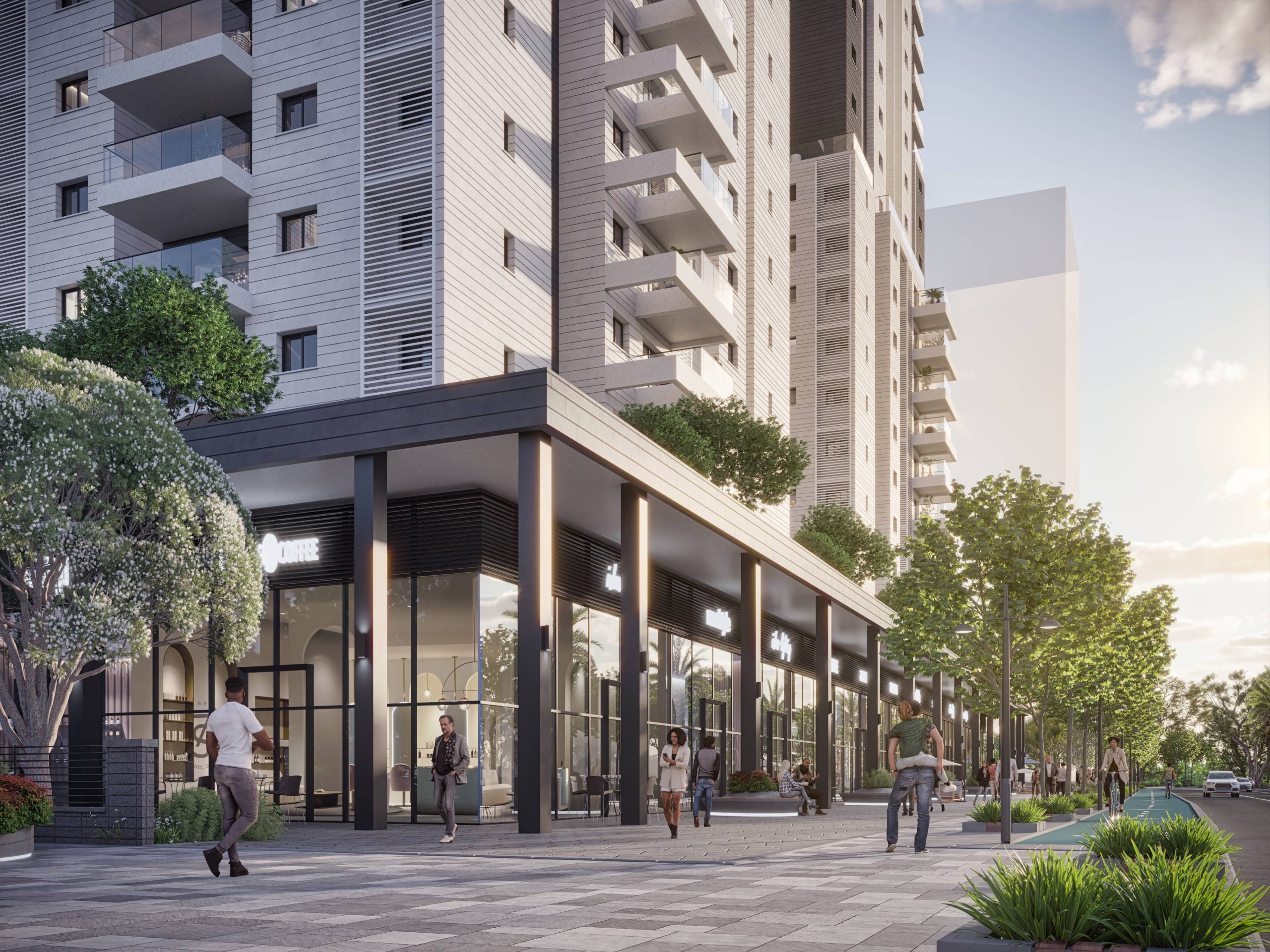 כחלק מפרויקט YOUNG שכבר אוכלס ופרויקט PARK YOUNG המוקם בימים אלה, תוכננה שדרת מסחר וחנויות אשר תעניק מענה לאלפי תושבי